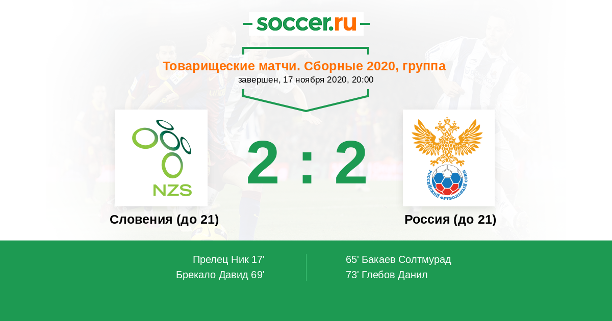 Протокол матча Словения (до 21) против Россия (до 21)