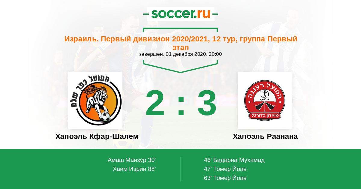 Протокол матча Хапоэль Кфар-Шалем против Хапоэль Раанана