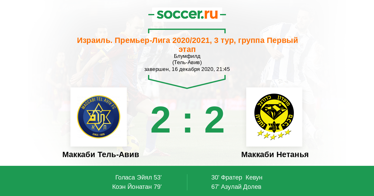 Протокол матча Маккаби Тель-Авив против Маккаби Нетанья