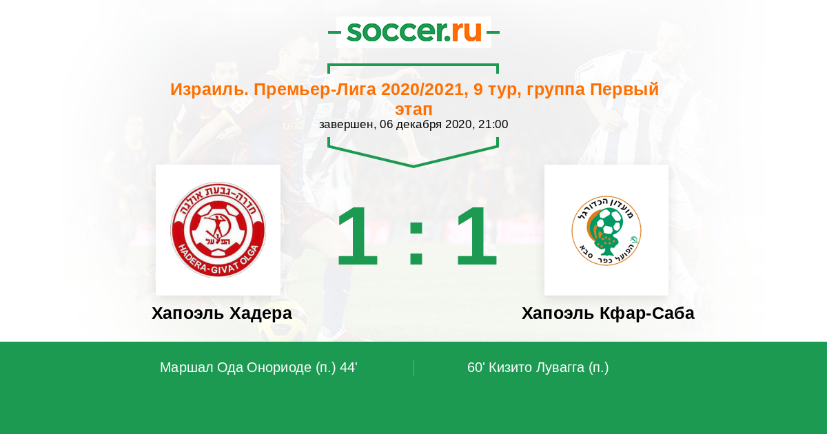 Протокол матча Хапоэль Хадера против Хапоэль Кфар-Саба