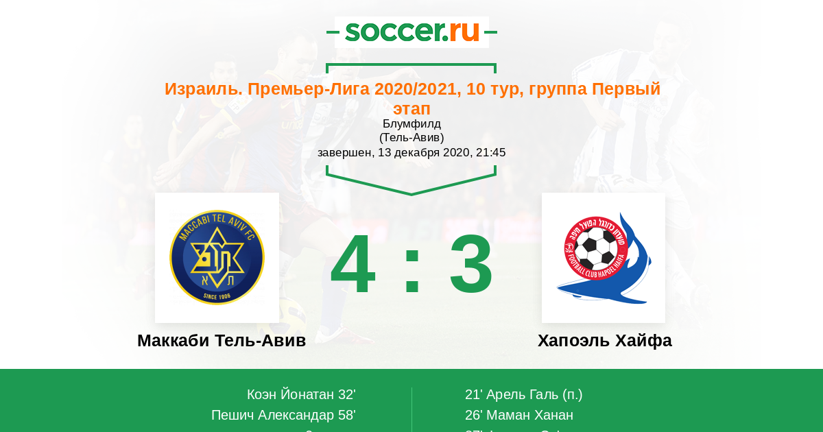 Протокол матча Маккаби Тель-Авив против Хапоэль Хайфа