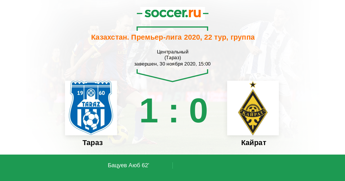 Протокол матча Тараз против Кайрат