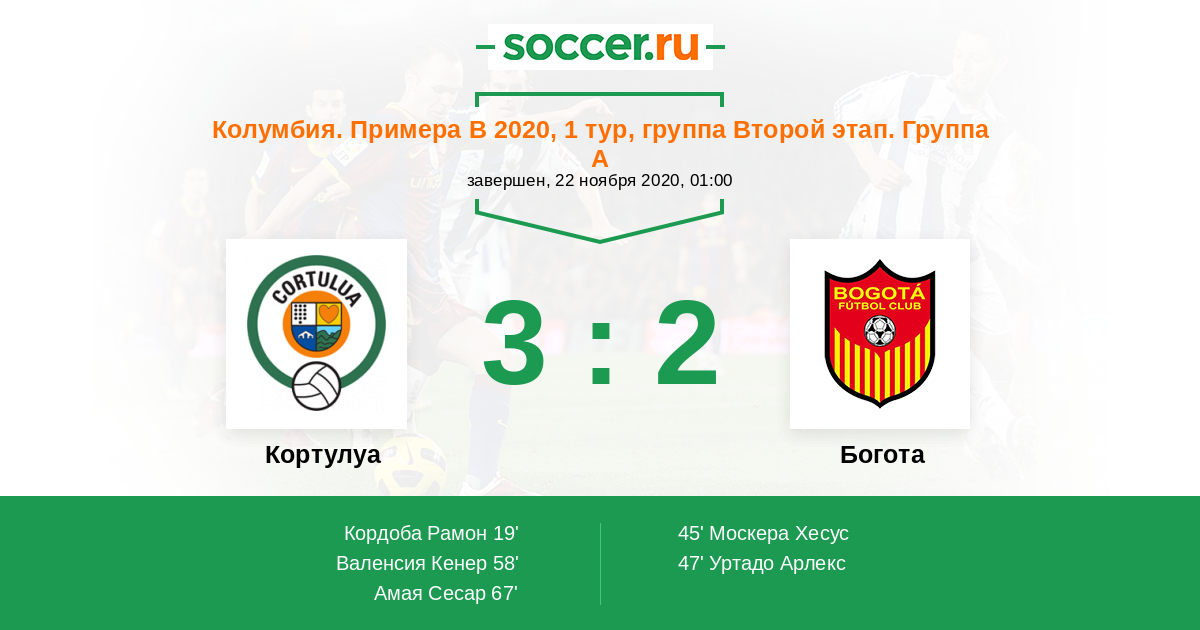 Протокол матча Кортулуа против Богота