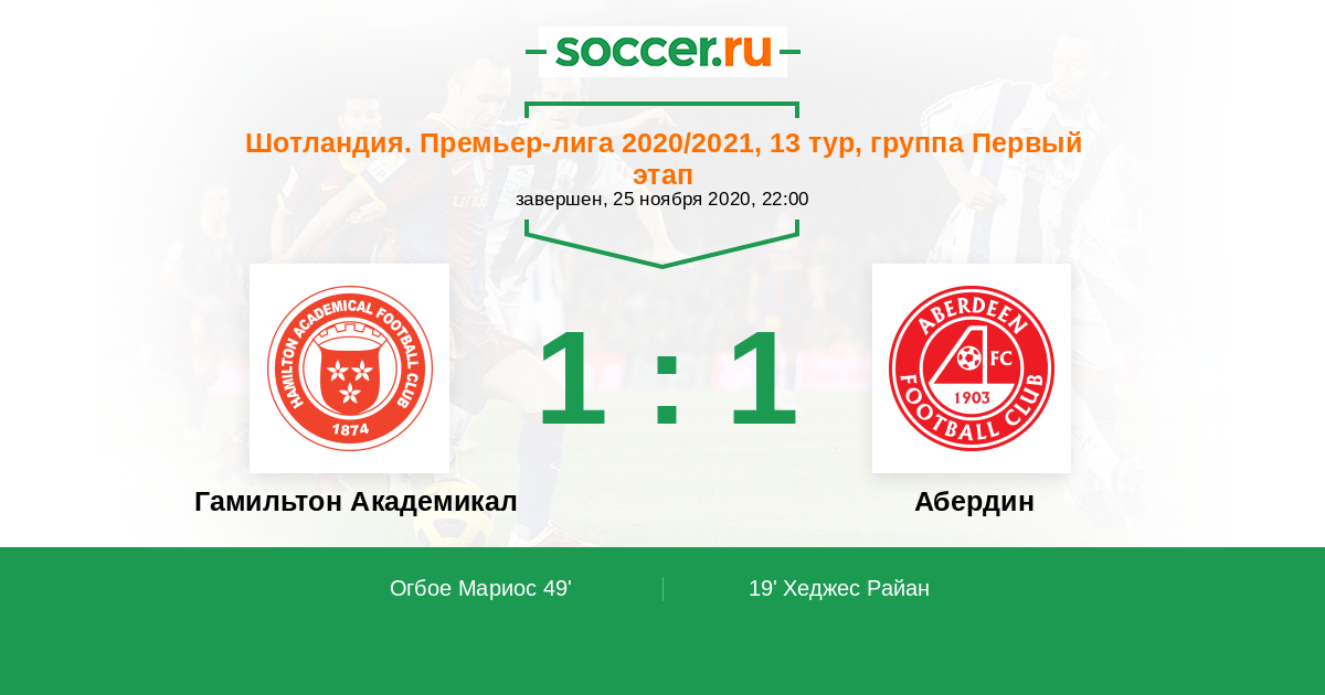 Протокол матча Гамильтон Академикал против Абердин