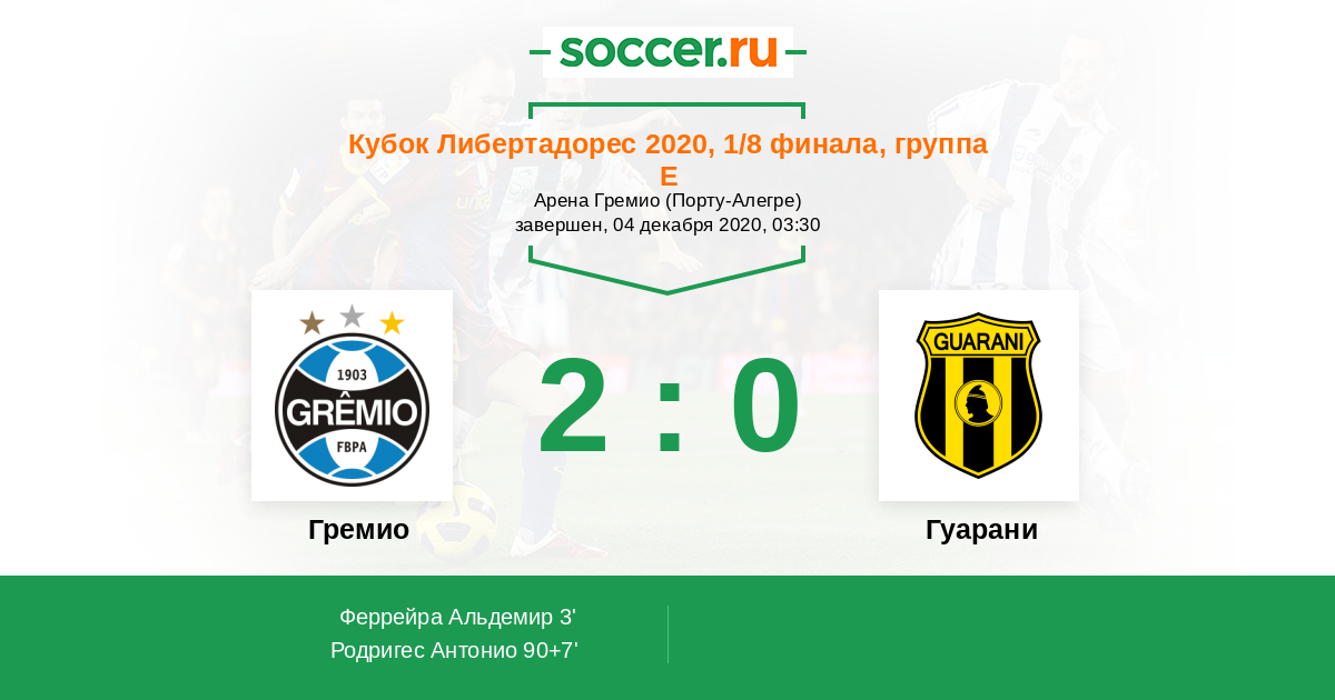 3' (1:0) Феррейра Альдемир (19) (Касагранде Жан Пьер (21))