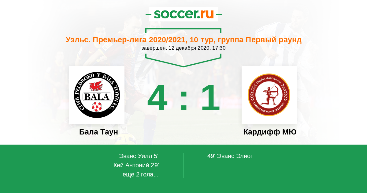 Протокол матча Бала Таун против Кардифф МЮ