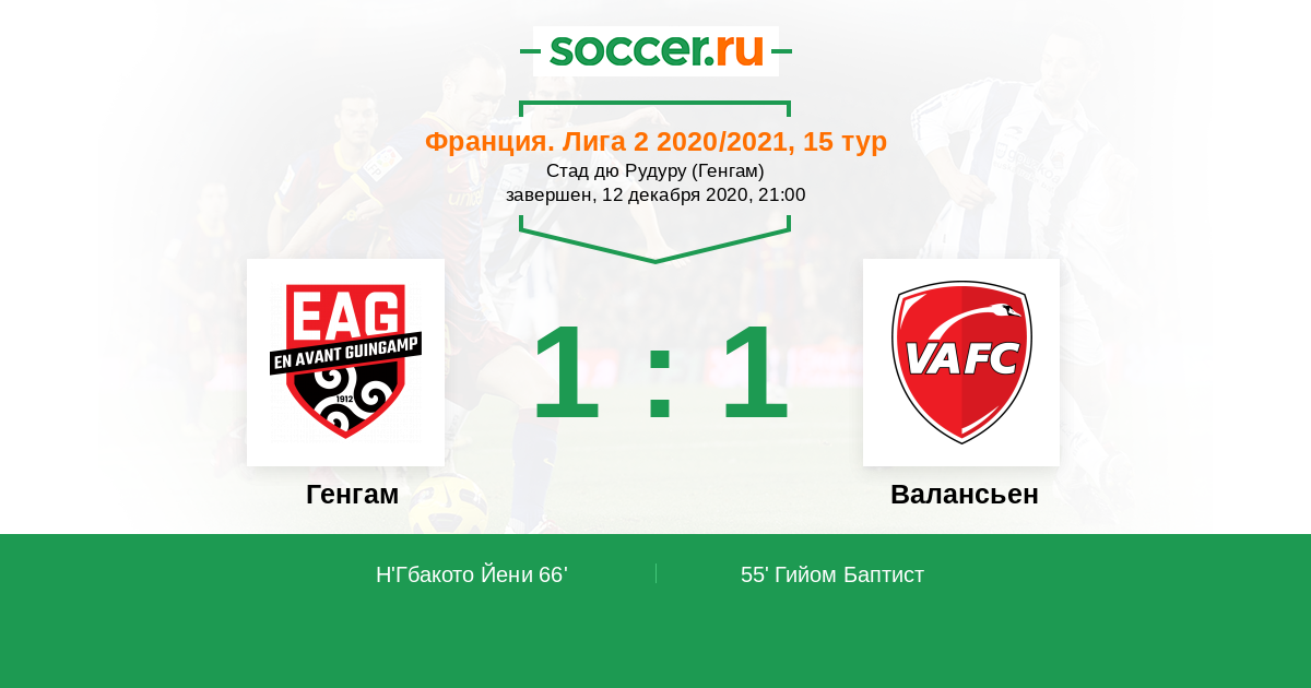 Протокол матча Генгам против Валансьен