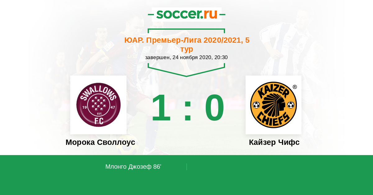 Протокол матча Морока Своллоус против Кайзер Чифс