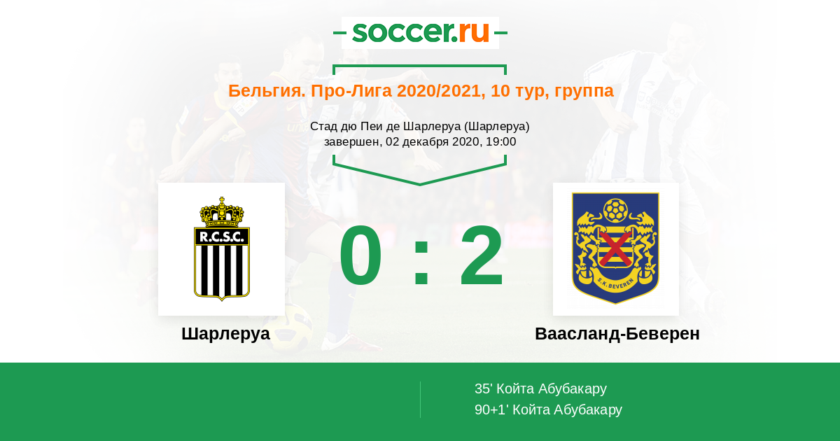 Протокол матча Шарлеруа против Ваасланд-Беверен