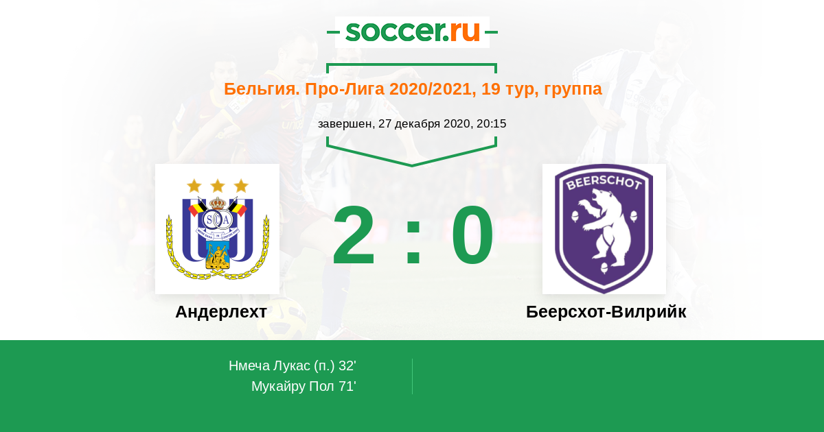Протокол матча Андерлехт против Беерсхот-Вилрийк