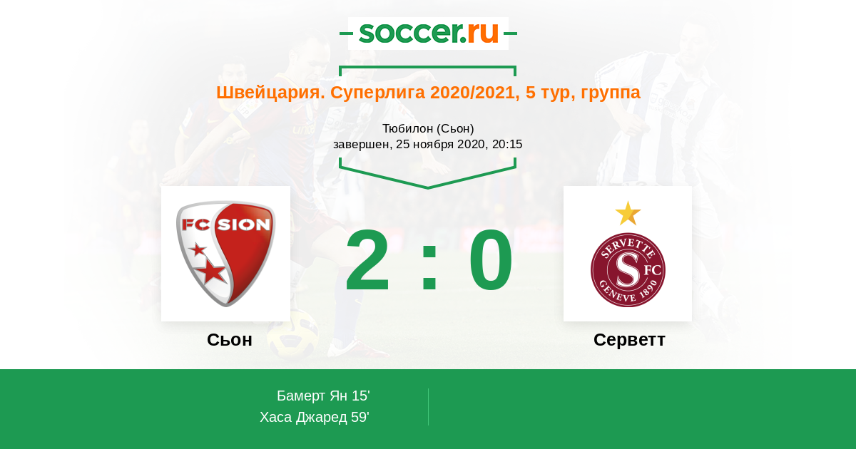 Протокол матча Сьон против Серветт