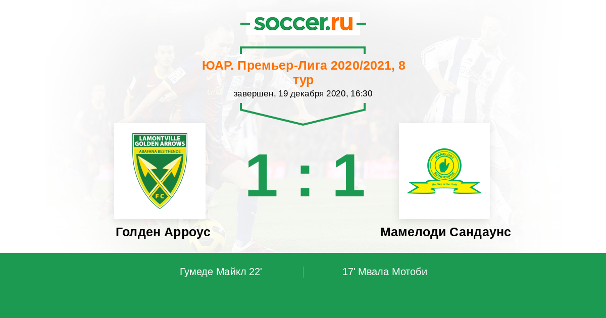Протокол матча Голден Арроус против Мамелоди Сандаунс