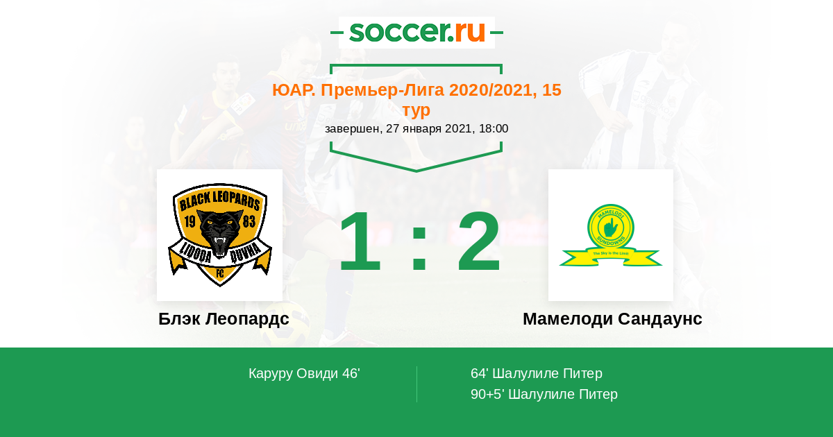 Протокол матча Блэк Леопардс против Мамелоди Сандаунс
