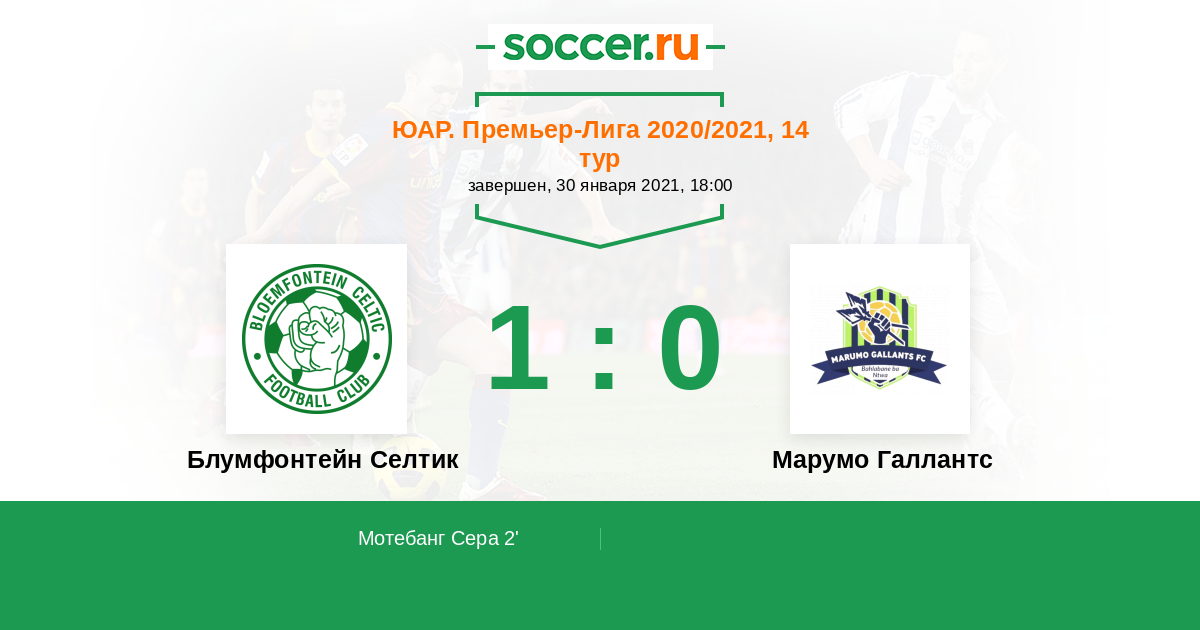 Протокол матча Блумфонтейн Селтик против Марумо Галлантс