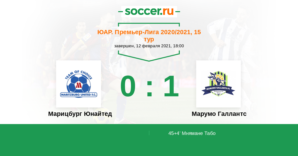 Протокол матча Марицбург Юнайтед против Марумо Галлантс