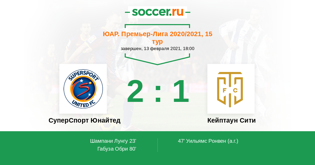 Протокол матча СуперСпорт Юнайтед против Кейптаун Сити