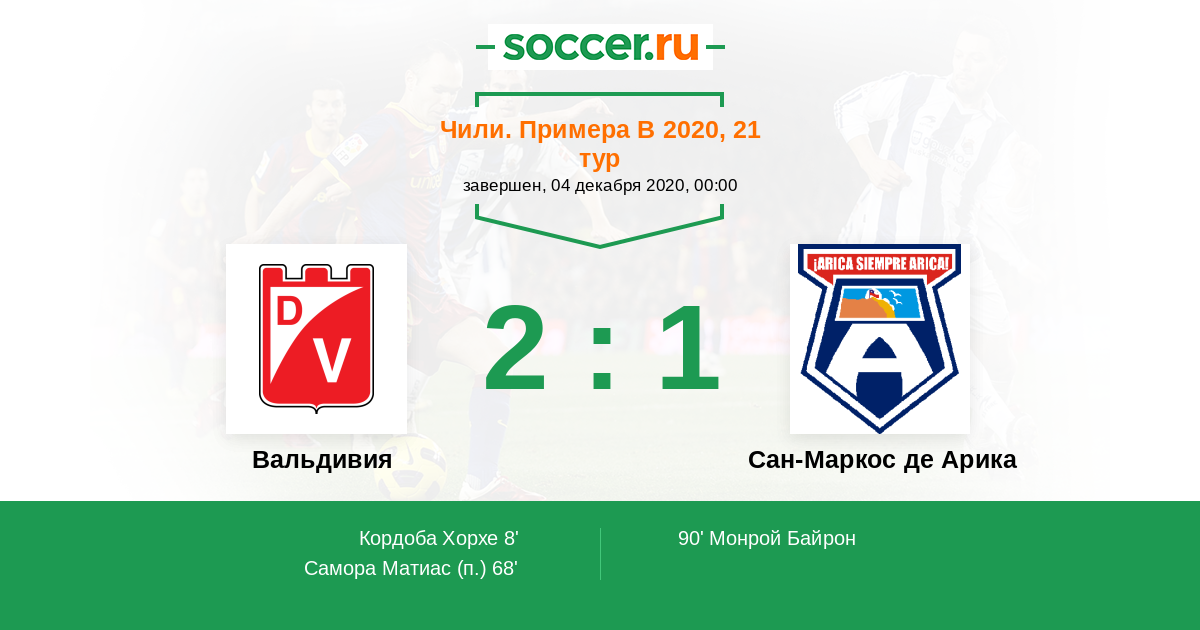 Протокол матча Вальдивия против Сан-Маркос де Арика