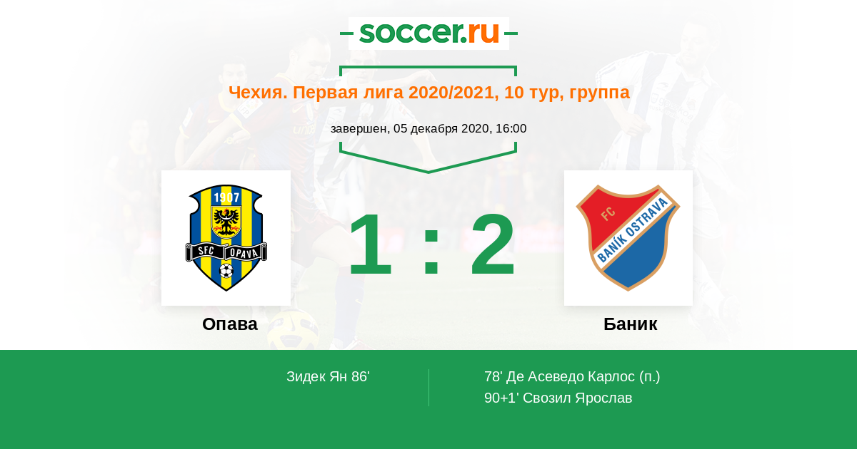 Протокол матча Опава против Баник