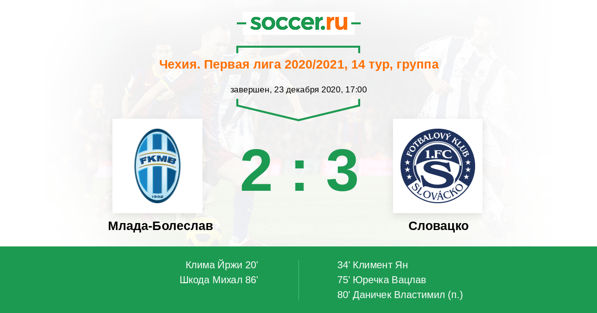 Протокол матча Млада-Болеслав против Словацко