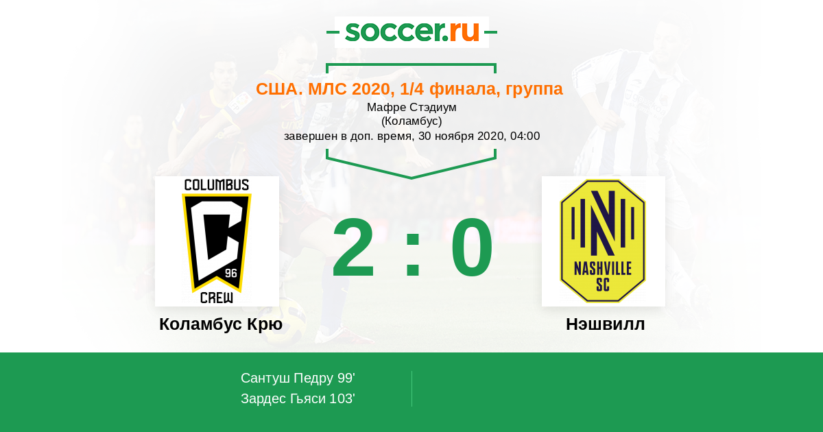 Протокол матча Коламбус Крю против Нэшвилл