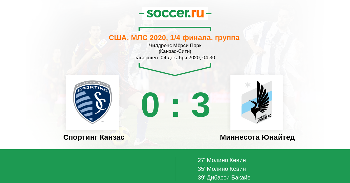 Протокол матча Спортинг Канзас против Миннесота Юнайтед