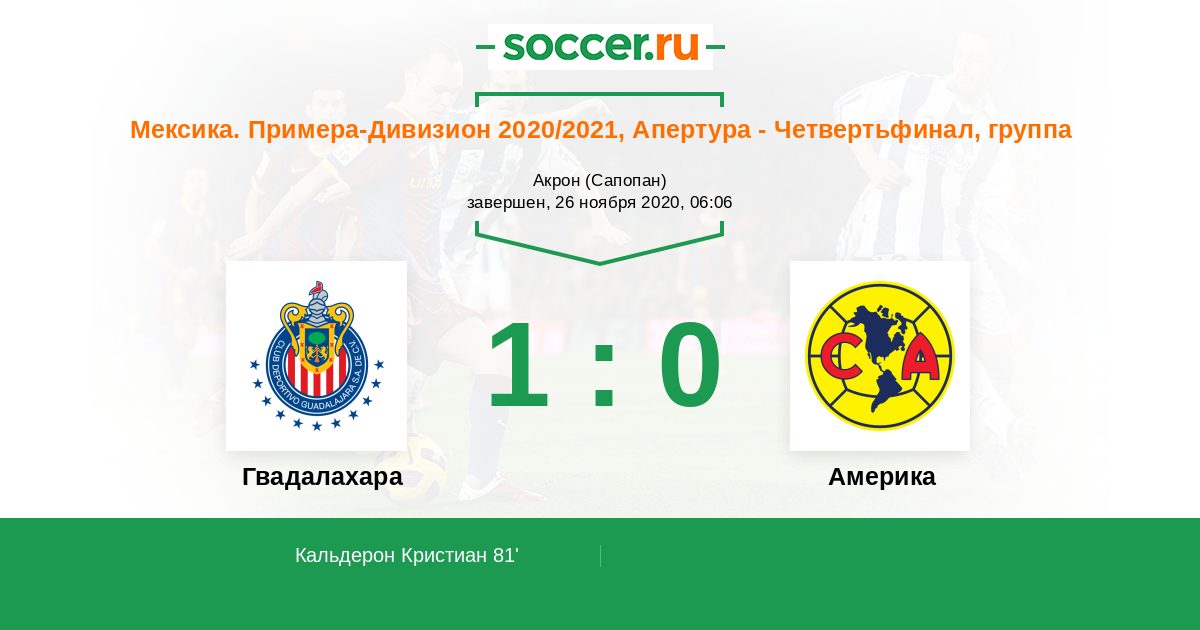 Протокол матча Гвадалахара против Америка