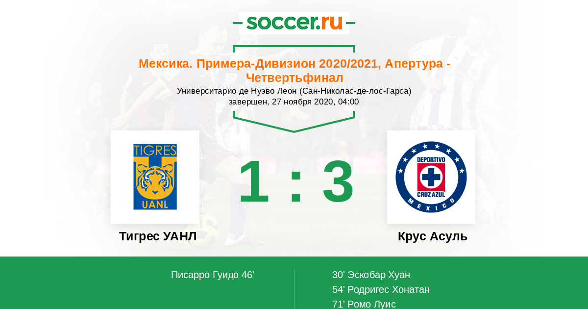 Протокол матча Тигрес УАНЛ против Крус Асуль