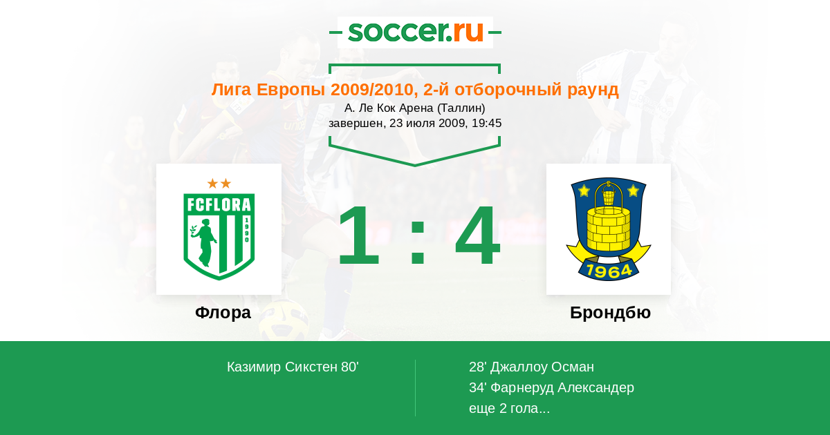 Протокол матча Флора против Брондбю