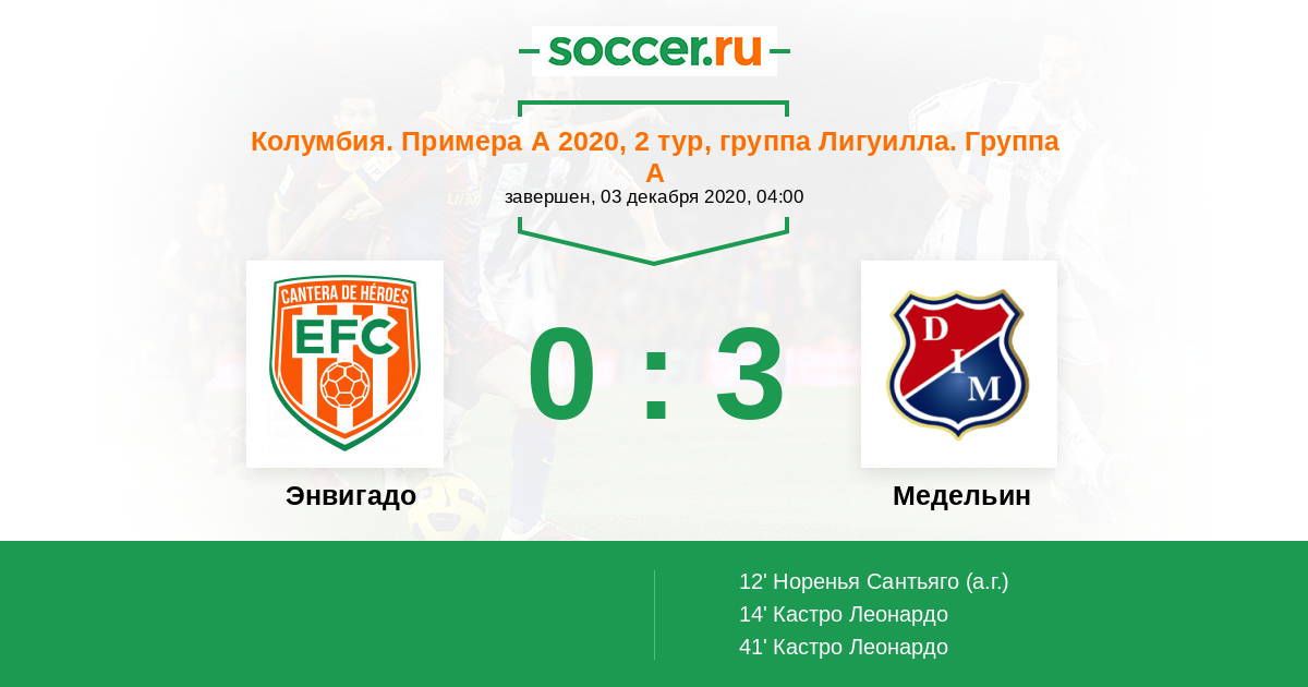 Протокол матча Энвигадо против Медельин