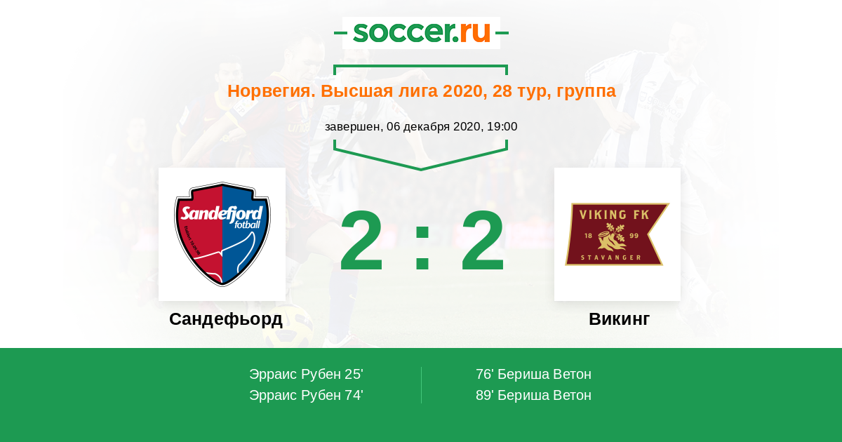 Протокол матча Сандефьорд против Викинг