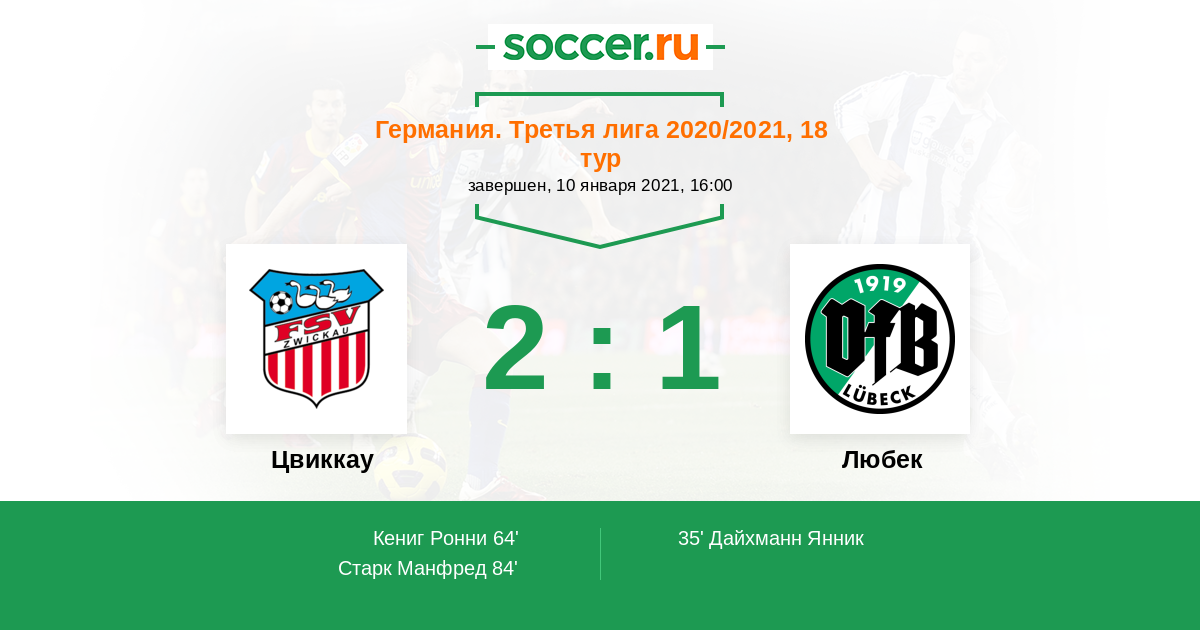 Протокол матча Цвиккау против Любек