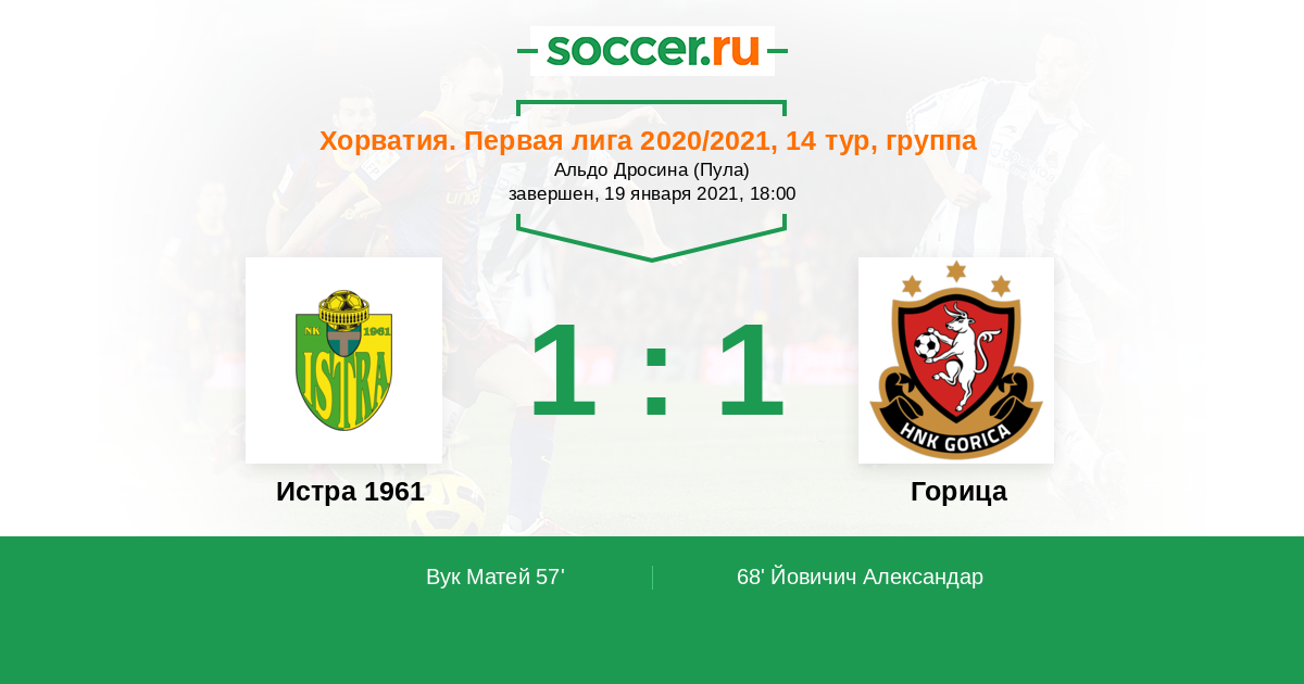 Протокол матча Истра 1961 против Горица