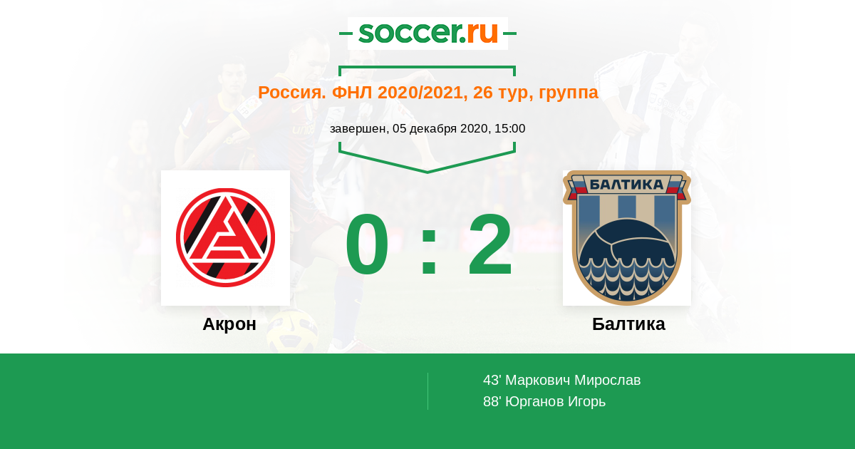 Протокол матча Акрон против Балтика