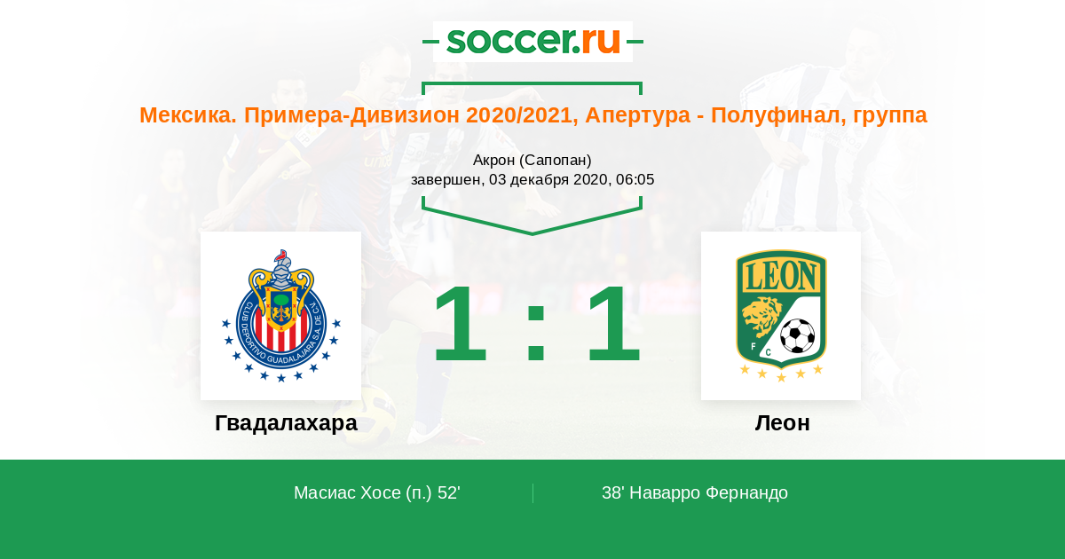 Протокол матча Гвадалахара против Леон
