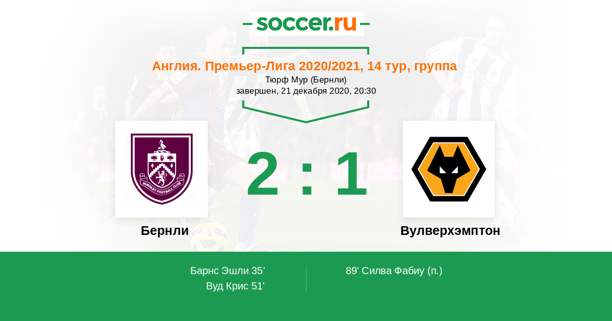Протокол матча Бернли против Вулверхэмптон