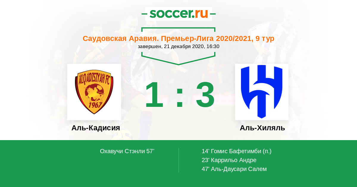 Протокол матча Аль-Кадисия против Аль-Хиляль