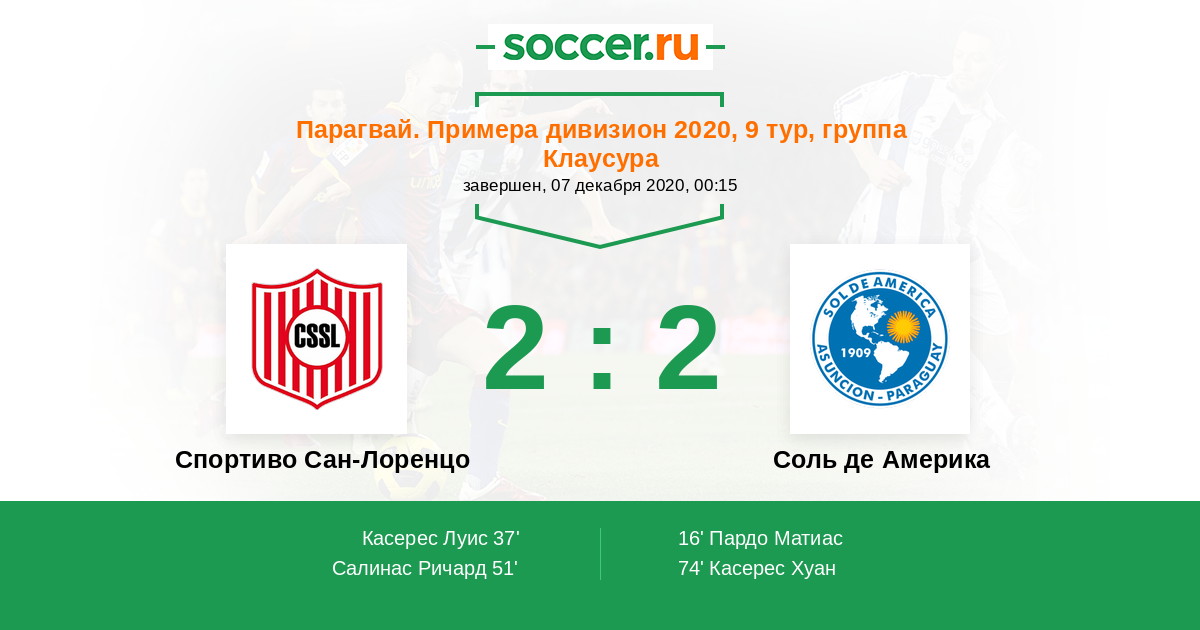 Протокол матча Спортиво Сан-Лоренцо против Соль де Америка