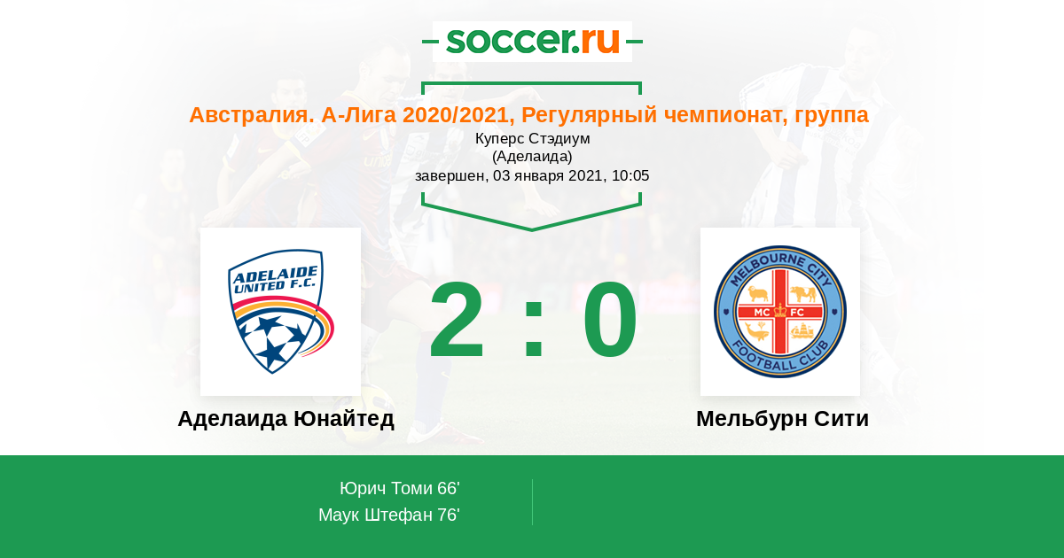 Протокол матча Аделаида Юнайтед против Мельбурн Сити