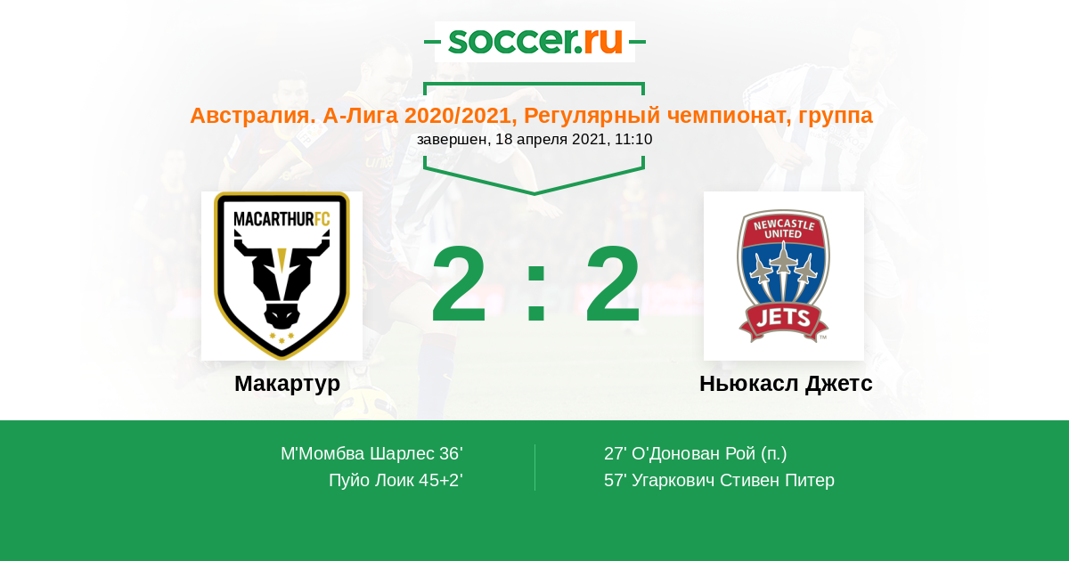 Протокол матча Макартур против Ньюкасл Джетс