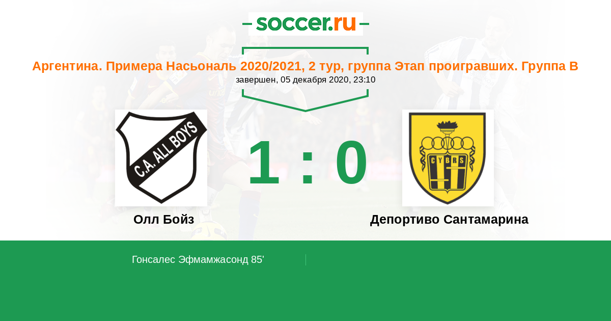 Протокол матча Олл Бойз против Депортиво Сантамарина