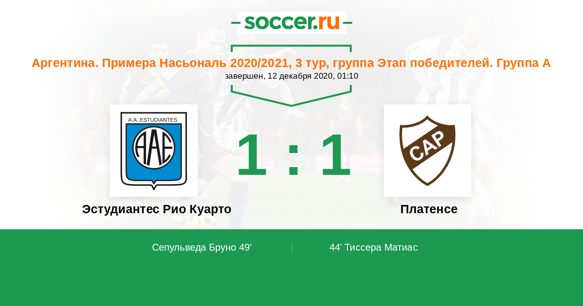 Протокол матча Эстудиантес Рио Куарто против Платенсе