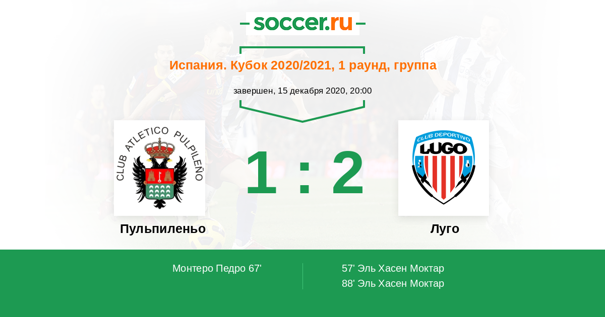 Протокол матча Пульпиленьо против Луго