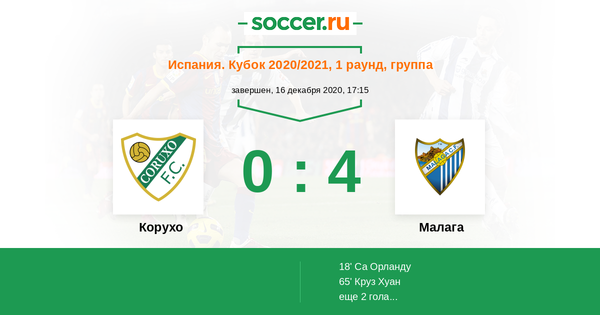 Протокол матча Корухо против Малага