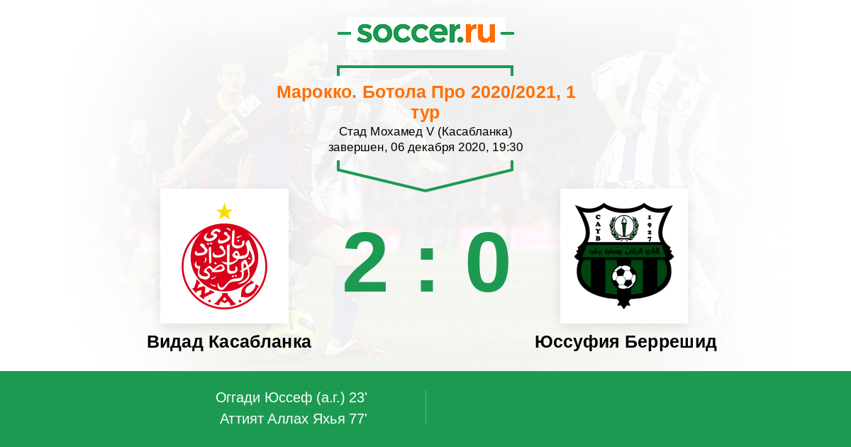 Протокол матча Видад Касабланка против Юссуфия Беррешид