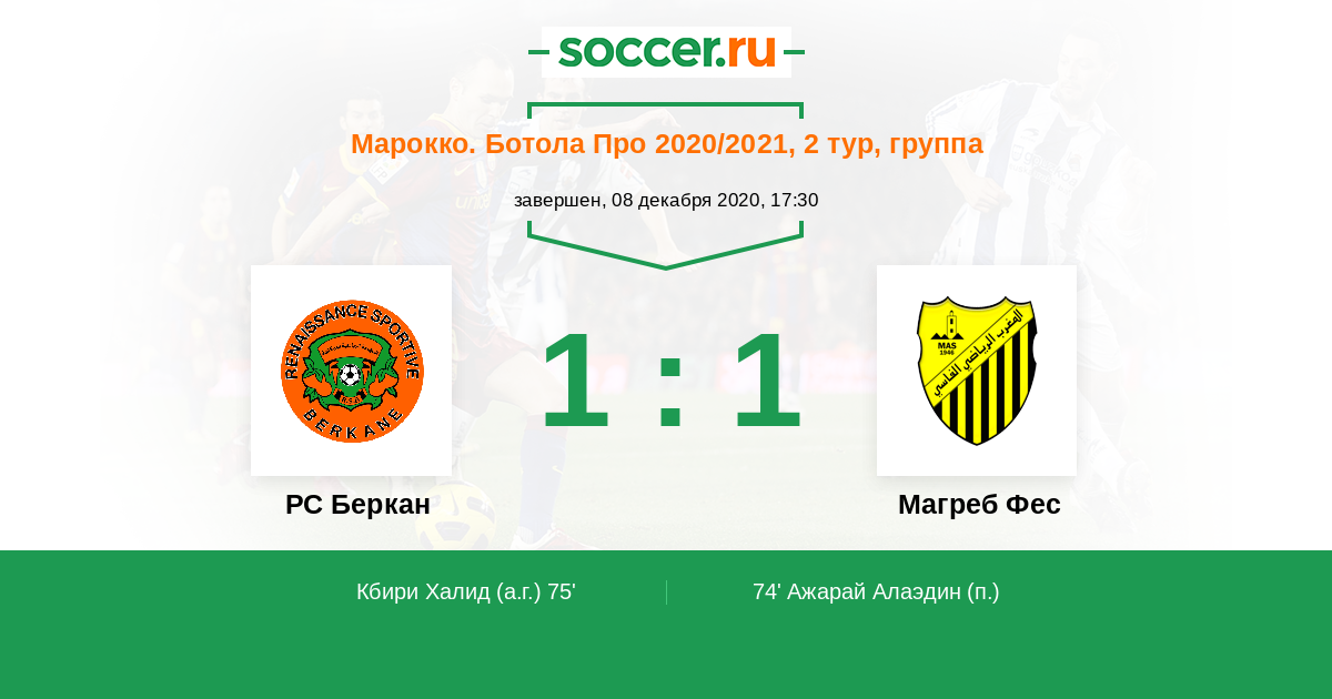 Протокол матча РС Беркан против Магреб Фес