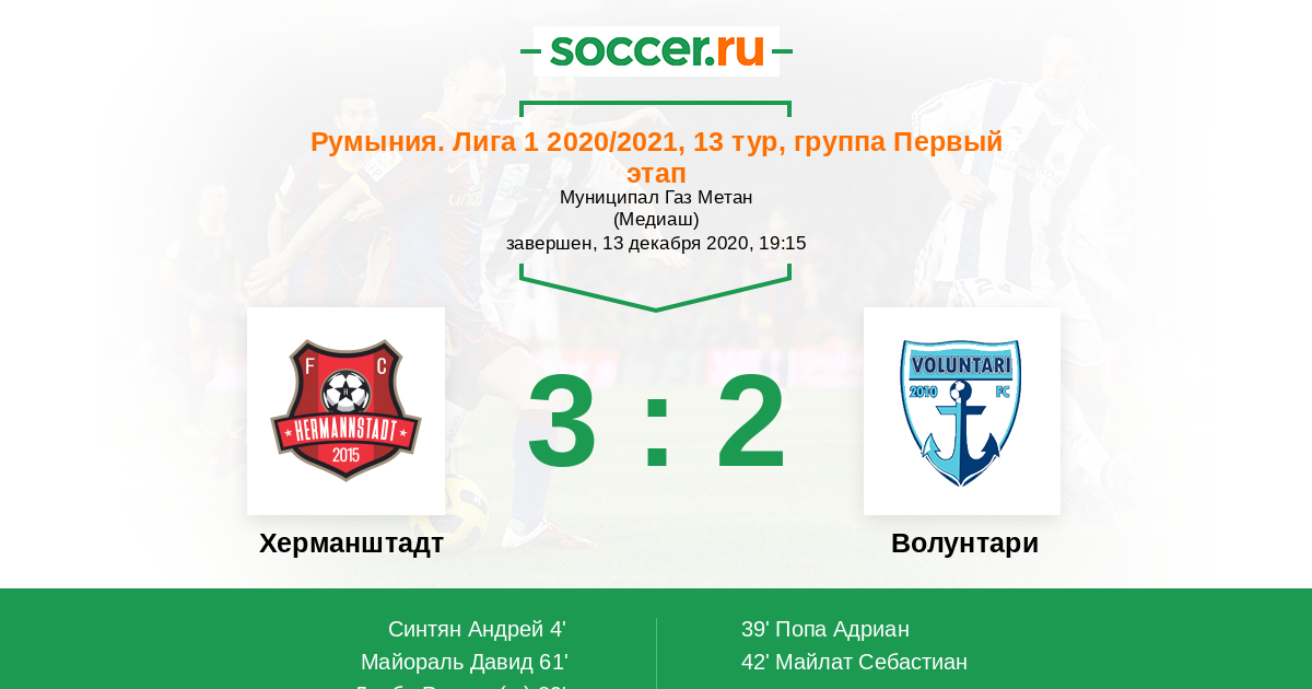 42' (1:2) Майлат Себастиан (17) (Попа Адриан (88))