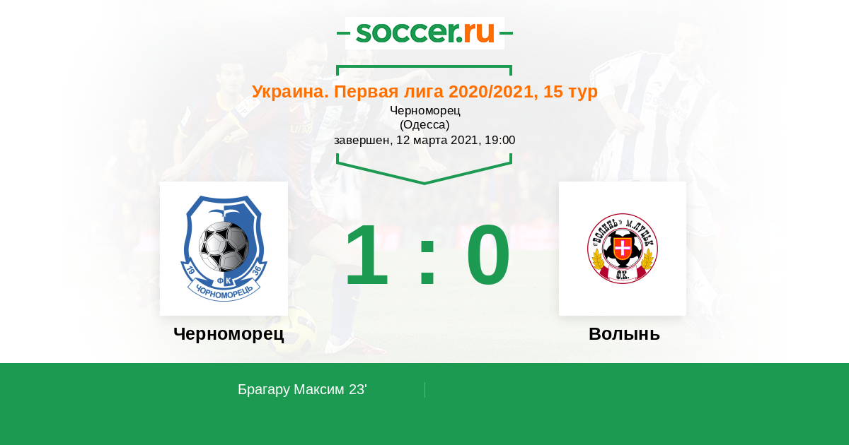 Протокол матча Черноморец против Волынь