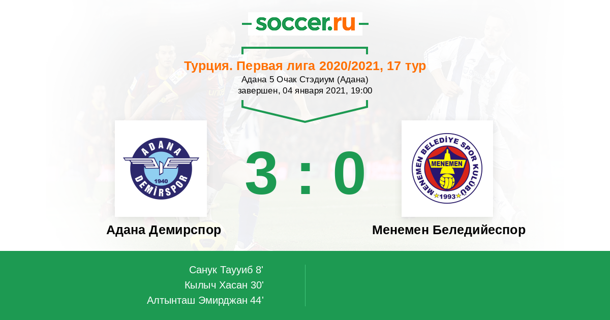 Протокол матча Адана Демирспор против Менемен Беледийеспор
