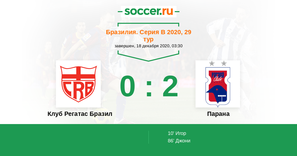 Протокол матча Клуб Регатас Бразил против Парана