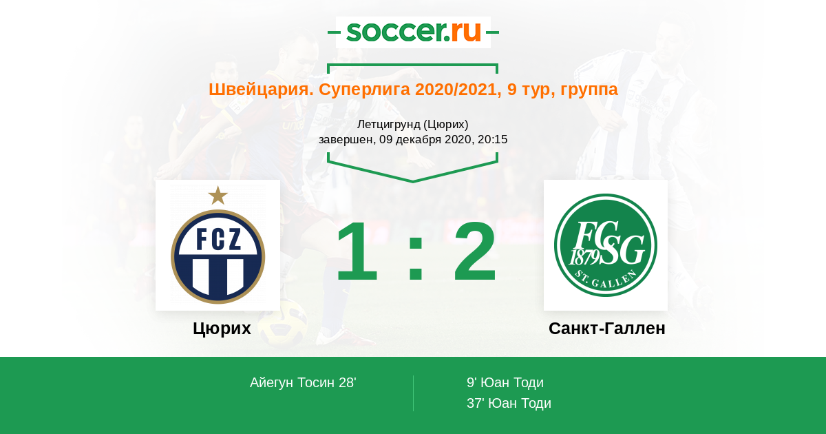 Протокол матча Цюрих против Санкт-Галлен